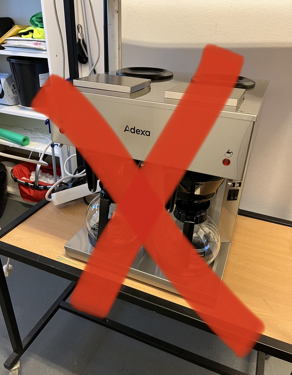 Använd den lilla kaffebryggaren, tar lite längre tid att brygga kaffe men det får funka så länge tills vi försökt lösa det!